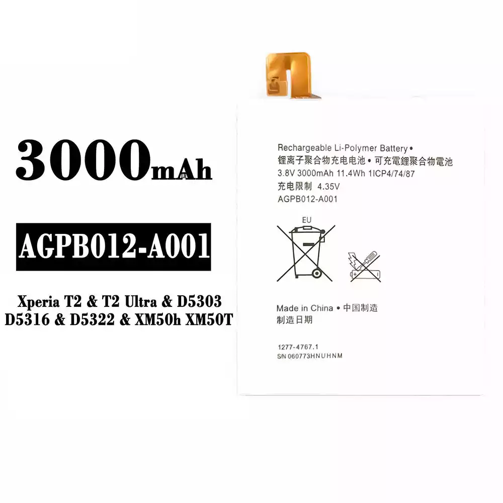 Batería AGPB012-A001 para Sony Xperia T2 / T2 Ultra / D5303 / D5316 / D5322 / XM50h / XM50T