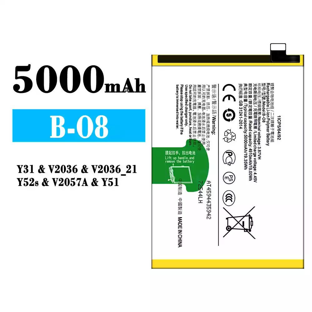 Batería B-O8 para VIVO Y31/Y52s/Y51/V2036/V2036_21/V2057A