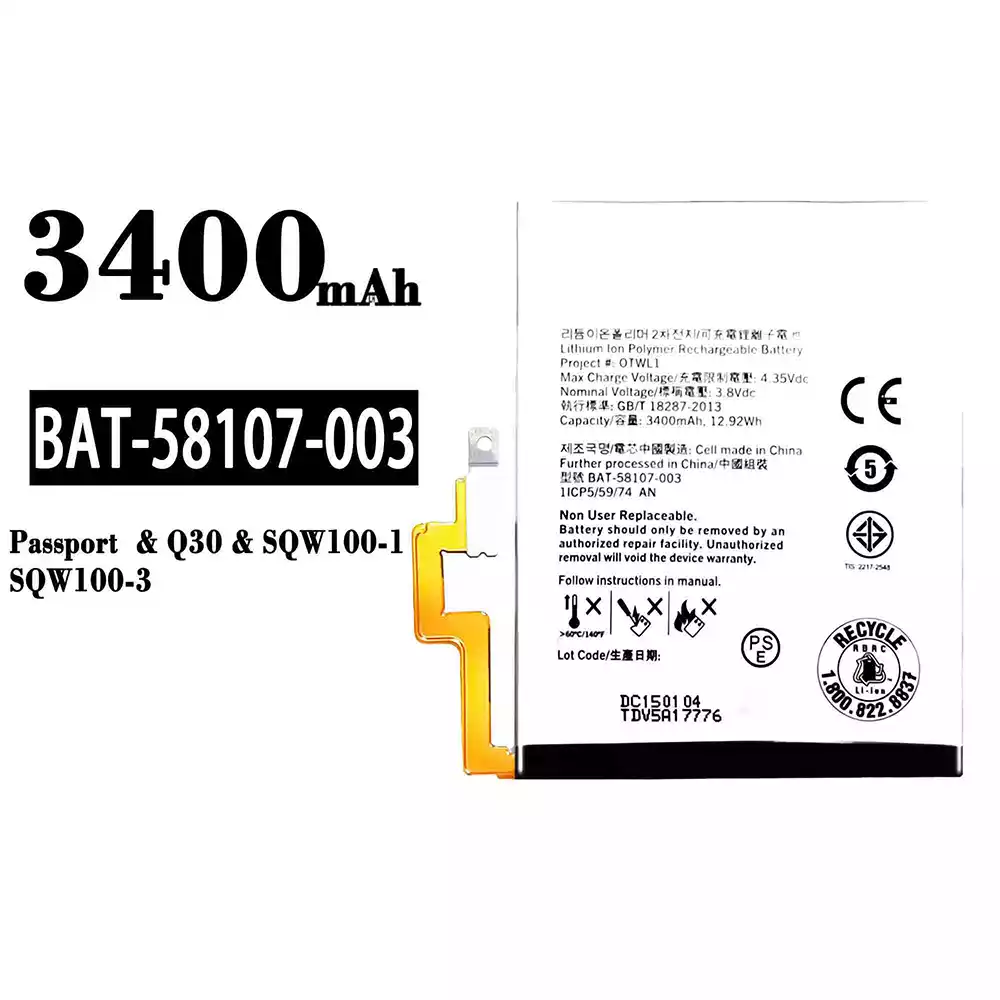 Batería BAT-58107-003 para BlackBerry Passport/Q30/SQW100-1/SQW100-3