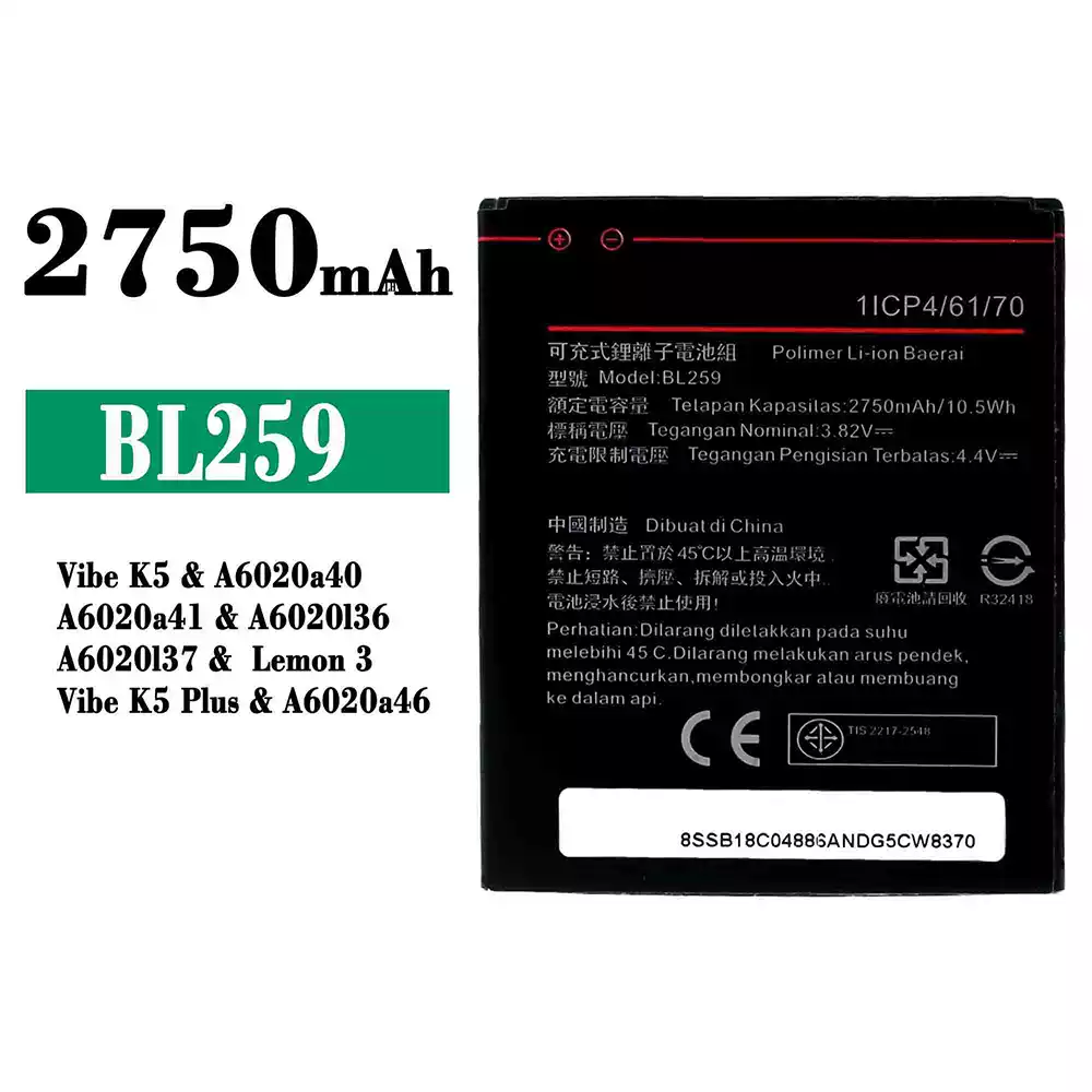 Batería BL259 para Lenovo Vibe K5 / A6020a40 / A6020a41 / A6020136 / A6020137 / Lemon 3 / Vibe K5 Plus / A6020a46