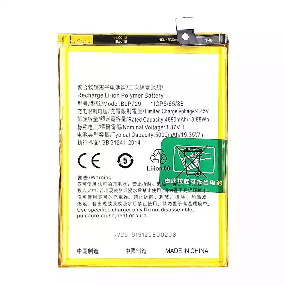 Batería BLP729 para OPPO Realme 5 / Realme 5i / Realme 5s / Realme C3 / Realme C3 (3 cameras) / Realme C11 2020 / Realme C21 / Realme C21Y / Realme C20