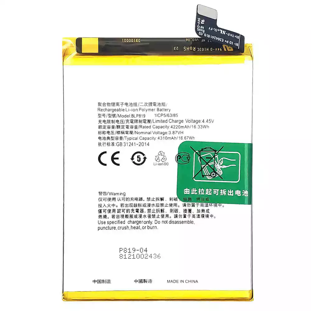 Batería BLP819 para OPPO Reno 5 4G /Reno 6 4G /F19 Pro Plus /Reno 5 Lite /Reno 5Z