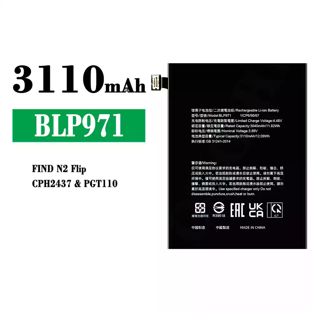 Batería BLP971 para OPPO FIND N2 Flip/CPH2437/PGT110