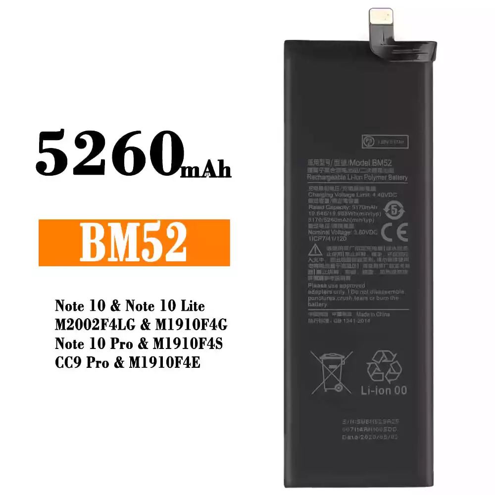 Batería BM52 para Xiaomi Note 10 / Note 10 Lite / M2002F4LG / M1910F4G / Note 10 Pro / M1910F4S / CC9 Pro / M1910F4E