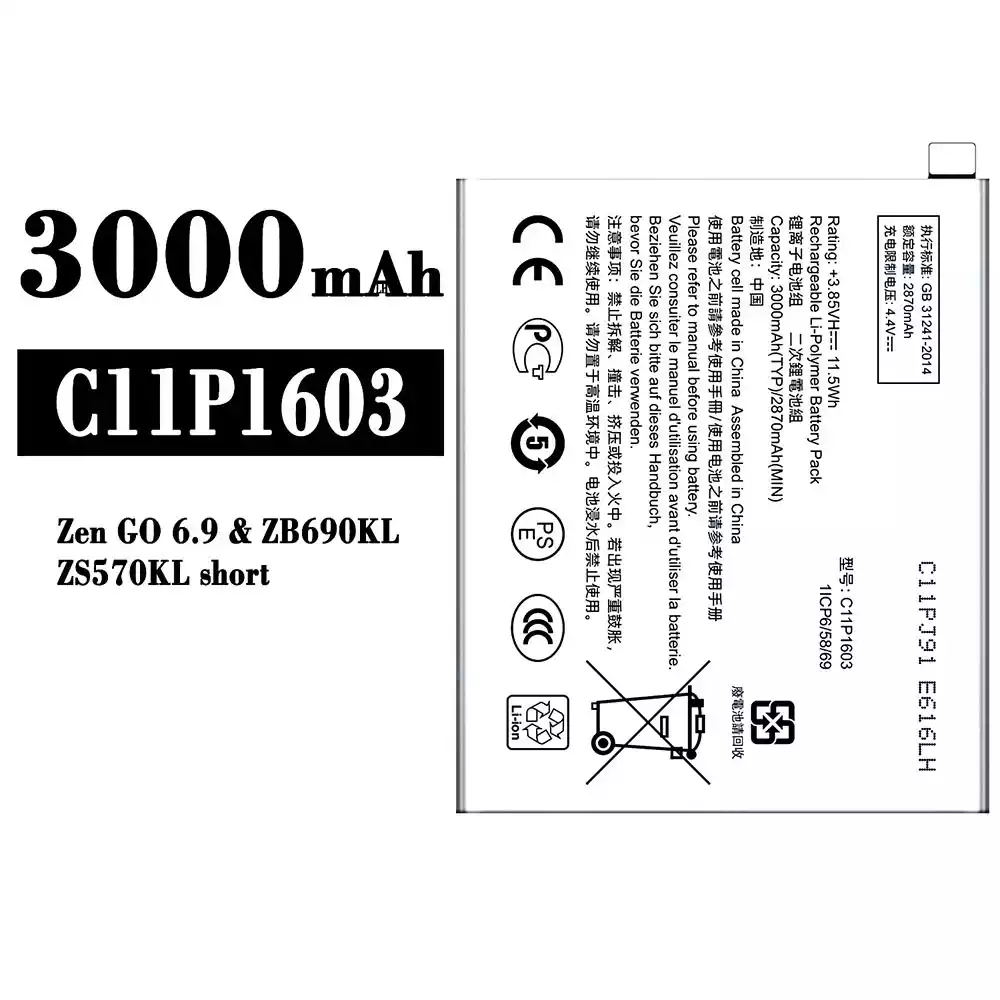 Batería C11P1603 para Asus Zen GO 6.9 / ZB690KL / ZS570KL Short